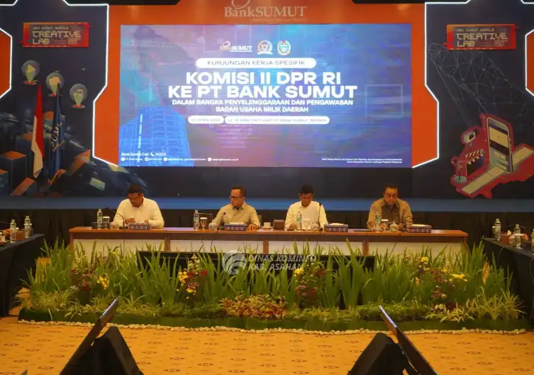 Bupati Asahan H. Taufik Zainal Abidin Siregar, S.Sos., M.Si menghadiri kegiatan Kunjungan Kerja Spesifik Komisi II DPR RI ke PT Bank Sumut dalam rangka pembahasan penyelenggaraan dan pengawasan Badan Usaha Milik Daerah (BUMD). Kegiatan ini berlangsung di Kantor Pusat PT Bank Sumut Medan, Rabu (01/04/2026).
